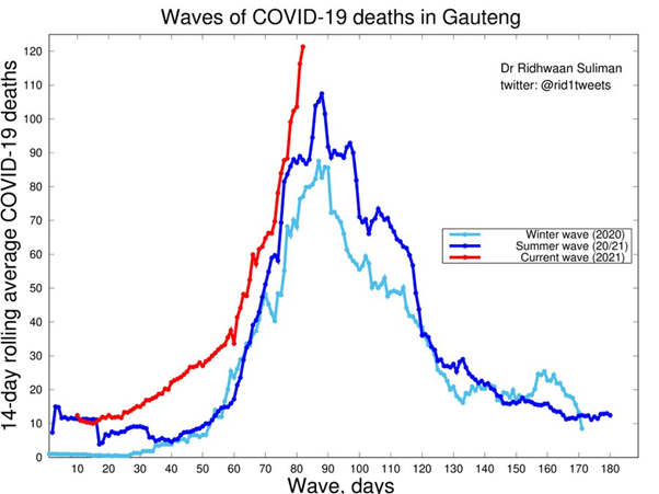 New deaths in Gauteng are still rising rapidly proving that the third wave is the most devastating wave.