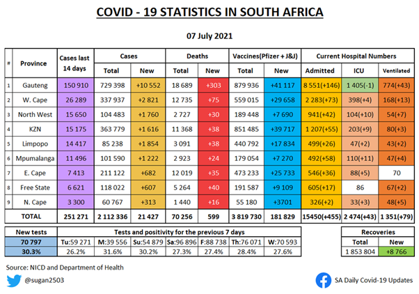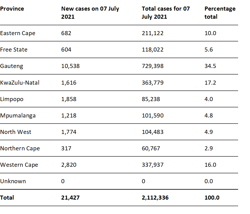 - KwaZulu-Natal & North-West – 8% of new cases each